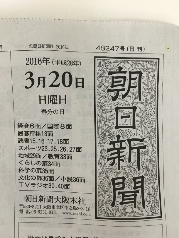 3月20日付け 朝日新聞に掲載されました