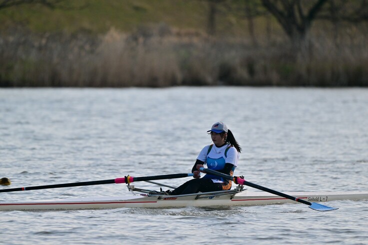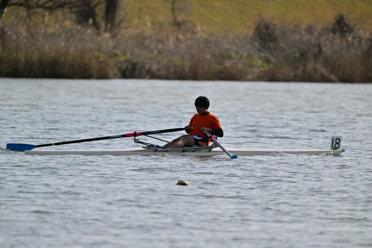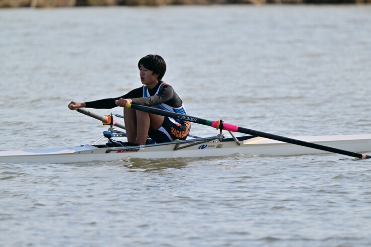 長崎明誠高校ボート部は、現在、男子5人、女子1人の計6人で活動しています。部員不足でチームボートを組めないので、全員シングルスカルで練習し、個の力を高めることに注力しています。練習メニューは並漕練習がメインです。シングルスカルは、他の漕手と合わせて漕ぐ必要がないので、自分のリズムで漕ぎ続けられますが、自分の力がそのまま艇速となるので手が抜けません。少ない部員ながら、毎日厳しい練習に取り組めるのは仲間との団結があるからです。だれも妥協することなく、チームで力を高めあっています。