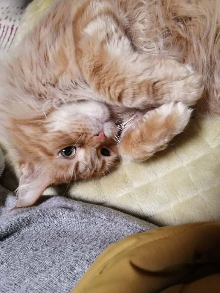 オレンジ色のボールのように丸まったりとかわいいロイです。