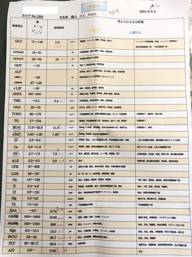 特に腎臓の状態が悪くなりつつあることは見過ごせません…。