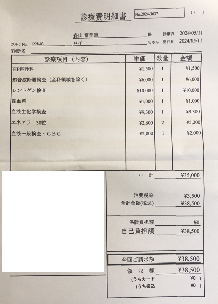 FIPについては先生から「まあまあ回復をしてきている」というように仰って頂けました。
