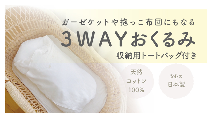 おくるみとして、お昼寝の時のガーゼケットとして、抱っこ布団として、色んな使い方が出来る仕様となっています。