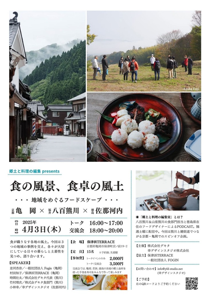 ちょこっとご案内ですが、明日4月3日(水)16:00〜リバー!リバー!リバー!の設計をお世話になっている保津浜TERRACEさんにて、徳島や福井からやってくる宿泊事業&フードデザイナー等をしている友人ご一行と「食の風景、食卓の風土」というテーマでゆるやかにトーク&交流会を行いますので、もしご都合のつく方がいらっしゃったらお気軽にご参加ください。交流会は、それぞれの地域の食材でおいしい手巻き寿司をつくります!