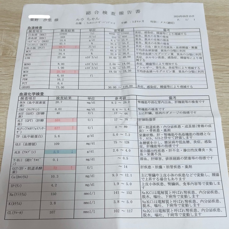 ルウちゃんの白血球が下がりすぎなければいいのですが..。でも頑張りすぎないでね。