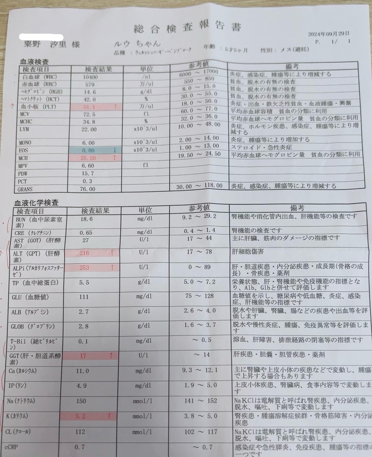 抗がん剤の効きが悪くなってきてしまったのかと少しショックでしたが、その後の血液検査では白血球の数値は正常値まで戻っていて肝臓や腎臓の数値もとても良くなっていてほっとしました。