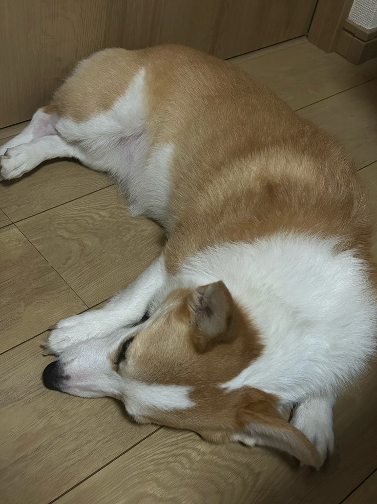 ごはんもちゃんと食べてトイレもたくさんして疲れたのかお休み中です。