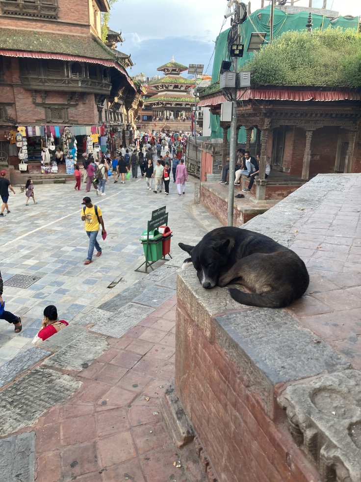ネパールの町中には野良犬がたくさんいます。道端はもちろん、なんと、寺院でお昼寝をしている犬たちもいるのです。