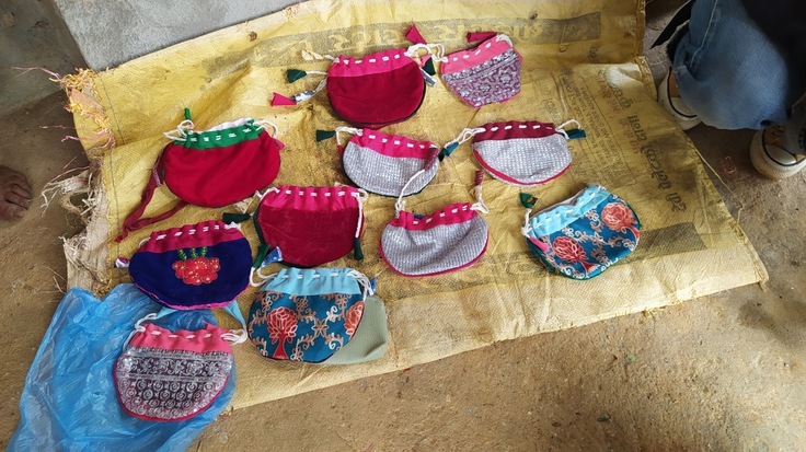 そして、実はこの方も農家さんなんです!主な収入源の農業に加えて、副収入としてポーチ作りをしているのですが、山奥で制作していることから、クルタのハギレを仕入れるために、私たちが上ってきた急坂をスタスタ上り下りしているよう・・・(パワフル!)
