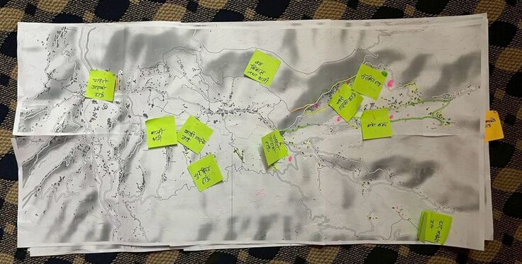 当初は、農家さんたちが活発に議論しながら作ったマップをすぐに活用できないのだろうか?もったいないな、と私たちは思っていたのですが、今回はあくまで導入段階のため、未完成なままの地図を提示することは誤った情報を共有することにもつながりかねないのだと学びました。また、ネパールでは防災マップやハザードマップの概念自体があまり広まっておらず、地図を通して自分たちの住んでいる場所を見つめなおすことが、防災情報をマップを通して活かしていくために重要な段階であることも実感できました。