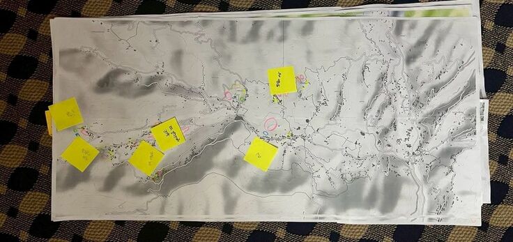 この作業の中では、地域の方々だからこそ知っている灌漑用水の氾濫や土砂崩れ、見落とされがちな小さな穴や地盤のゆるみといった、土地の特性や人の暮らしに深く根付いた危険箇所が詳しく確認されていました。地域内でどこが危険なのかを共有、そして可視化し、災害に対する意識を高める貴重な機会になったのではないかと思います。