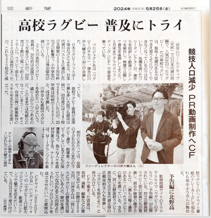 ラストスパートの時期に朝日新聞さんがプロジェクトを紹介してくださいました!