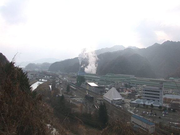 (1)釜石全景の撮影は、あいにくの雨と霧でかな~り困難でした。しかしこんな感じに撮れることもありましたよ! 画面中央少し下の線路に、黒い四角がみえます。そう、SLです! 30日は今年度最後の「銀河ドリームライン」の運行!