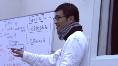 今日の会議は早川さんをファシリテーターとしてワークショップ形式でおこなわれます。参加者は5つのグループに別れて、早川さんの提示するお題について話し合い、その結果をまとめてゆきます。