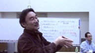 ここで各グループに1人ずつ入った理事がコメント。スクラム釜石が何か特定の明快なイメージを持つ必要があるのかどうか、そもそも論が提起されました。永田理事は分かりやすく「アメーバ」のたとえを使いました。とにかく近くにあるもの、関係しそうなものを巻き込み取り込んで、いろいろやっているのがスクラム釜石の実像。