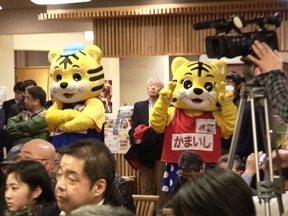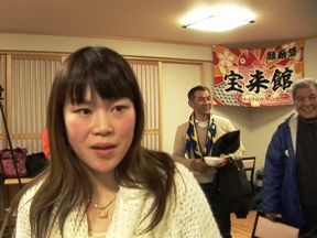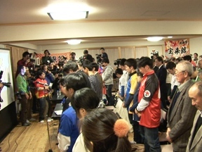 釜石招致委員会と宝来館の女将から元気なご挨拶。
