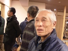 3月2日午後7時前の鵜住居・宝来館前。開催地発表は9時半の予定ですが、すでに報道各社は乗り込んでいました。入館してみると、宝来館さんから報道およびイベント来場者向けにおにぎりと豚汁を用意してくださっていました。おいしくいただきました。