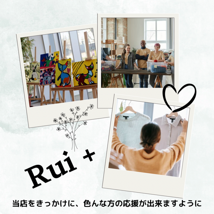 「Rui+」では、従来のチャリティショップにプラスして、様々な取り組みを実現したいと思っています!