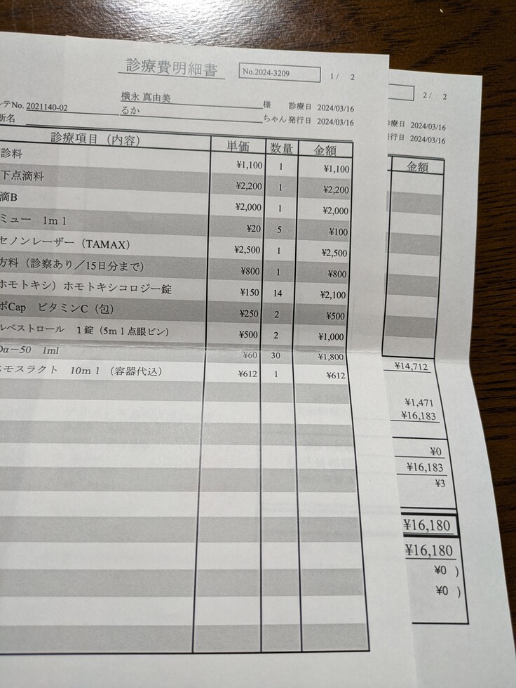 レーザー療法とビタミンC点滴療法だけの日は、8690円なのですが、薬などが出ると、14000円から16000円前後になることが多いです。