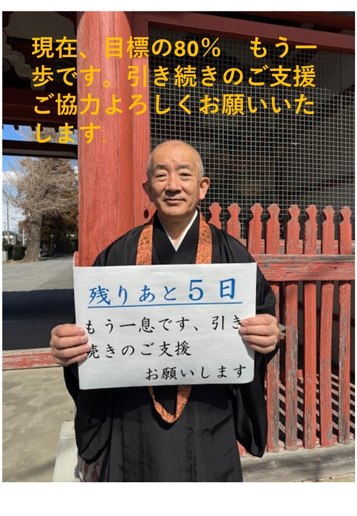 1月に始まったこのプロジェクト。現在目標の80パーセントまできました。あとわずかです。目標まで届かないと0になってしまいます。引き続きのご支援よろしくお願いいたします。