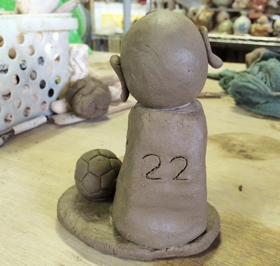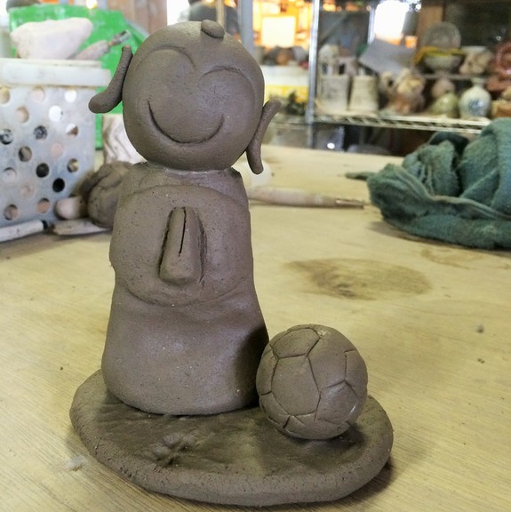 この、サッカー地蔵は、天国でもサッカーを続けて欲しい。サッカー仲間を忘れないで欲しい。サッカー仲間にも兄を忘れて欲しくない。私はそんな思いを込めて作りました。仏様の様に優しかった兄を思うと、「お地蔵さま」しか思い浮かびませんでした。