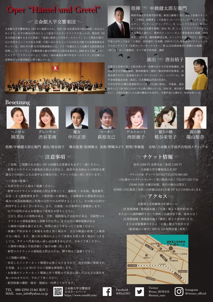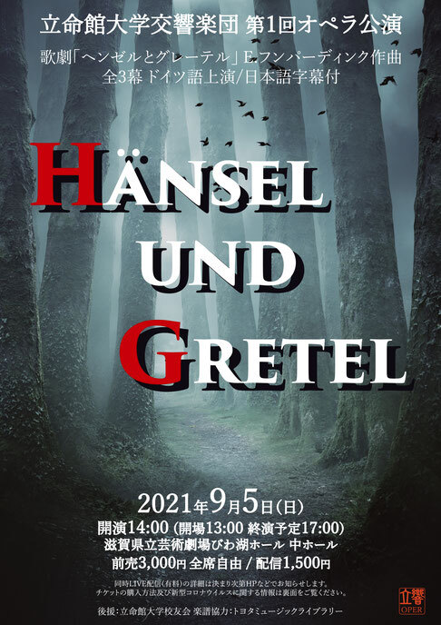 立命館大学交響楽団は2021年9月5日(日)、「立命館大学交響楽団第1回オペラ公演『ヘンゼルとグレーテル』」を開催いたします。