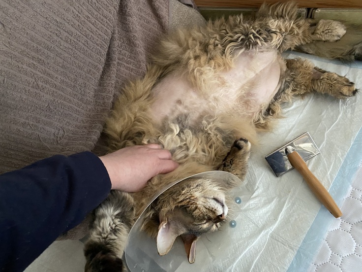 その際は撫でたりブラッシングをすると喜んでいたので、首周りやお尻の汚れと身体中の毛玉を怒らせないように少しづつ取って、綺麗にしていきました✨