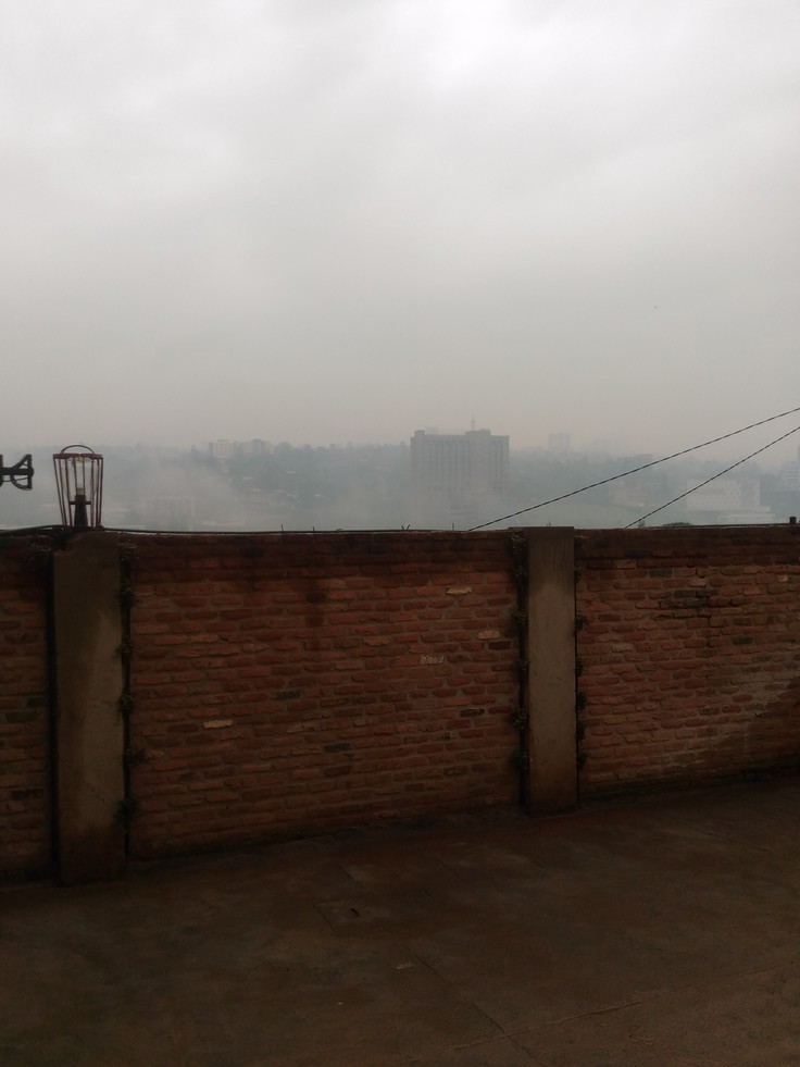今日のルワンダの夜明けは霧。一寸先も見えづらい。