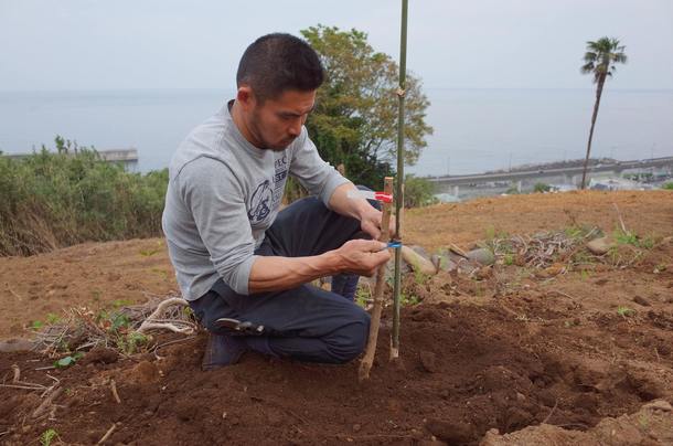 年始から荒れ果てた農地の開墾を始め、整備し、念願の植樹ということで、メンバー一同とても達成感に満たされております。