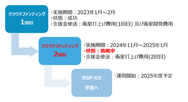 今回のファンディングでみなさまから頂いた支援金は、2025年度に打ち上げを予定している人工衛星「RSP-03」において、ロケット打上げ費用として活用させて頂きます(リーマンサットでは打上げ費用を2023年と2025年の2回分割での支払いとなっています。尚、当クラウドファンディングプロジェクトは、この2025年分の支払いをもって完了とさせて頂きます)