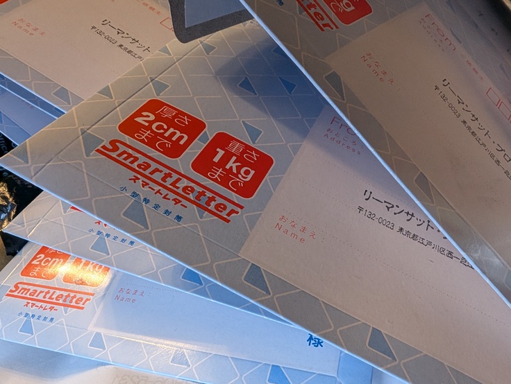 3) リターンの種類により発送地域/日付が異なる場合があるのですが、依頼主はすべて「リーマンサット・プロジェクト」で統一しています。複数種類ご支援頂いた方でも若干お届けのタイミングが前後するかもしれません。また本来でしたらなるべく同梱してお受取りの手間を省くべきなのですが、発送の都合上五月雨式のお届けになるケースもございますので予めご承知おき頂けますと幸いです。