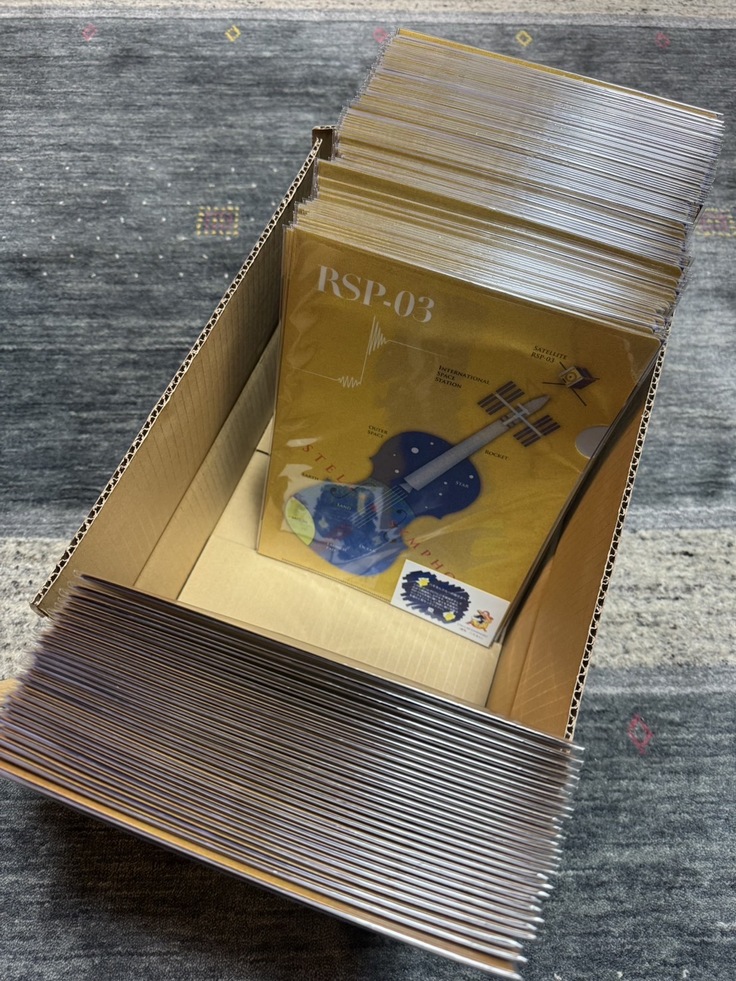 リーマンサット・プロジェクトの超小型人工衛星RSP-00からのミッションロゴデザインをリスペクトしつつRSP-03のミッションを意匠に含んだデザインとなっています。これを刺繡ワッペンとシールのセットにしてお届けします。