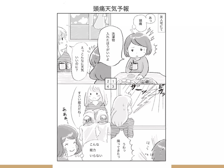 頭痛やめまい、倦怠感などによって、数分後に起きるゲリラ豪雨を察知したり、台風の規模を予測したりすることがあります。