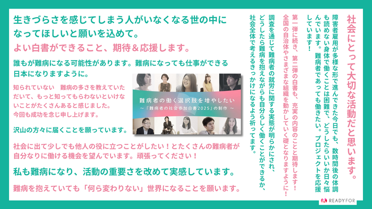 【残り3日】いただく応援コメントは、私達の今後の活動の活力になっています!
