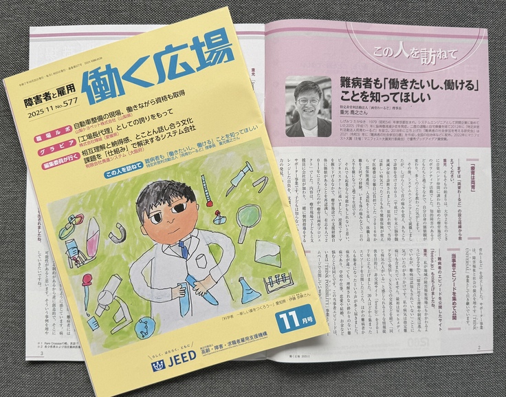 独立行政法人高齢・障害・求職者雇用支援機構(JEED)さん発行の働く広場11月号に掲載されました。