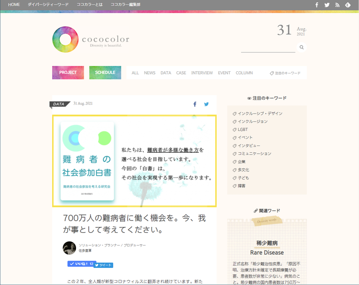 記事へはこちらから(https://cococolor.jp/rare-disease_5_210831)