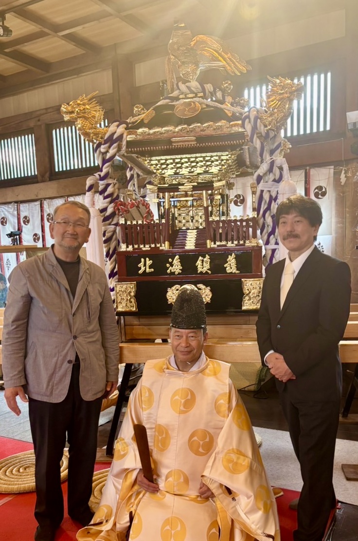 榎本武揚公が御祭神として認定された時に合わせて修復が完了し、「北海鎮護」の書が榎本公の御神体としてお目見えできるよう、2026年初めには修復を完成させることを目指しています。