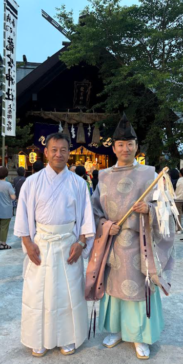 お祭り好きの私に、本間先輩は毎年これでもかというくらいお祭りを楽しむ方法を教えてくださいます。昨年からはお神輿担ぎに加えて、国指定重要無形文化財である松前神楽を教わりました。ぎっくり腰と闘いながら、小樽後志の安産祈願をさせていただき、いつも本当に光栄に思っています。そして龍宮神社や、神社を大切に想う人とのご縁に支えられ、私や家族の暮らしはあるのだと思っています。