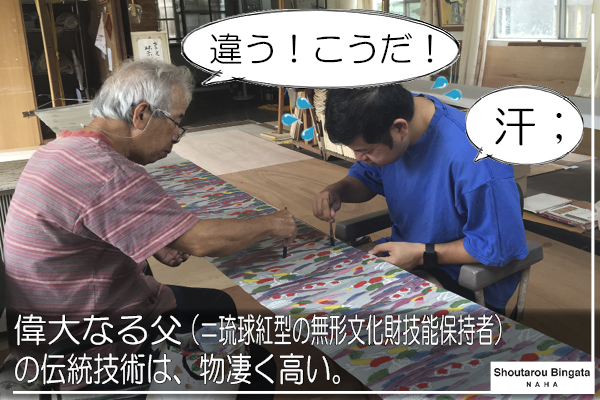 実はうちの実家、琉球びんがたを営んでいて親父が元々型紙職人で・・・