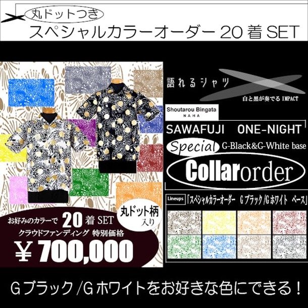 こちらのスペシャルカラーオーダーでは、お好きなカラーコード1色で「生地」と「ドット」をそれぞれ制作し、20着セットで「語れるシャツ」を制作する事ができます。染める生地は、木綿 / 白無地になります。