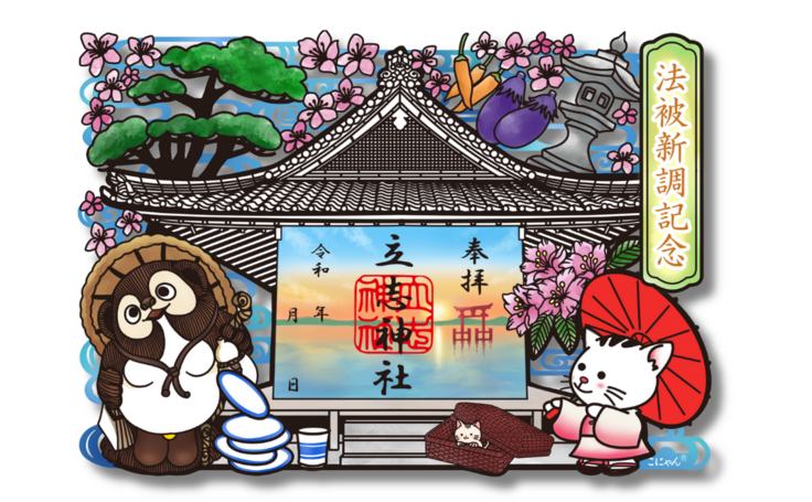 御神輿と新調する法被がご朱印の中で表現されており、法被を羽織っているのは、境内によく遊びに来てくれるネコのみーちゃんを描いています。