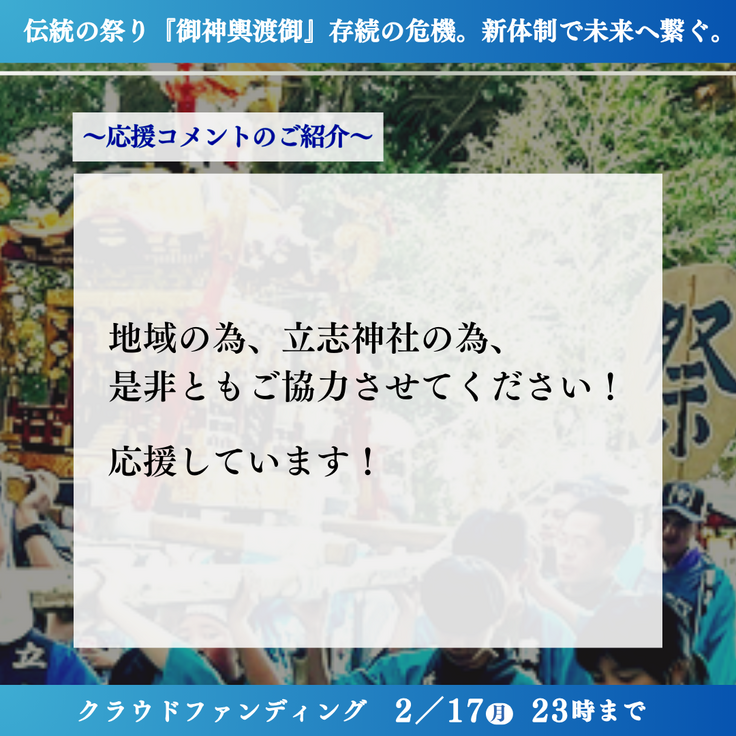 最終日は、御神輿の鳳凰のお写真と皆様からの応援メッセージをご紹介いたします。