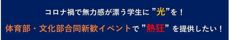 「これから大学に通う新入生だけでなく、今大学に通う在校生一人一人に"熱狂"を届けたい」、「コロナ禍で先が見えない今だからこそできることがあるはずだ」この一心で本イベント運営に臨んでおります。皆様の熱きご支援お待ちしております。