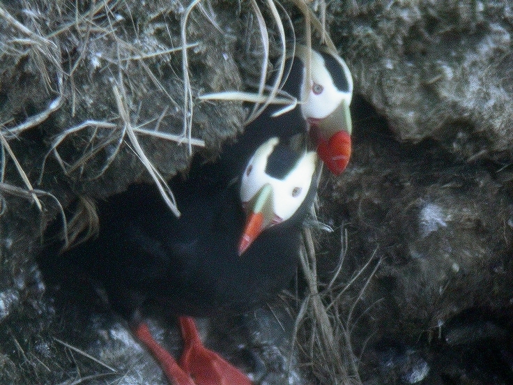 はじめまして、NPO法人エトピリカ基金代表の片岡義廣です。今はもう72歳のおじいちゃんですが、東京で育ち子供の時から動物や野鳥が大好きで、全国あちこち見て歩いていました。今住んでいる北海道の釧路と根室の間にある浜中町の霧多布に家族で来たのは35年ほど前でした。ここにはNPOの名称でもある美しい海鳥のエトピリカが住んでいたからです。エトピリカの写真は私が13年間観察していた最後に繁殖していたペアです。10年ほど前からNPOとして海鳥だけではなく、ここでも繁殖しているゼニガタアザラシも対象に加え新たな繁殖地の発見にも力を注いできました。
