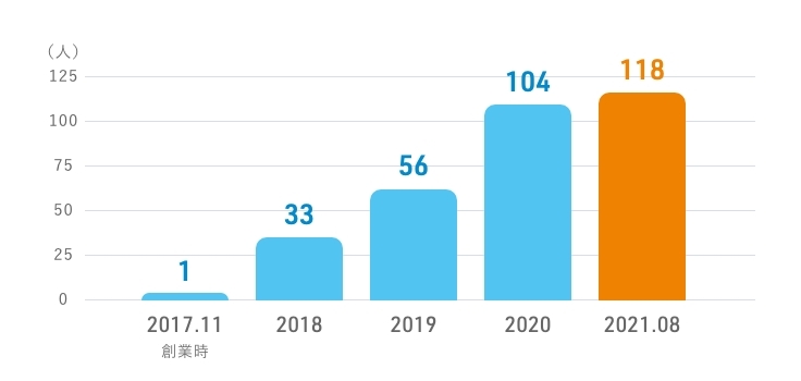 クラフはこれまでIT業界の中で培ってきたキャリアや経験を地域に還元し、宮崎で暮らす人々のキャリア形成の一助となれるのではないかと考えました。IT経験者は、その経験を新たな人材へ伝え、未経験者は多くの学びを得て成長のステップを登る。創業以来、IT未経験でも、セキュリティ企業で活躍できることを証明し、現在118名のメンバーが在籍しています。