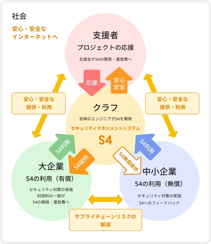 宮崎のセキュリティ企業である株式会社クラフは、2022年2月22日に「誰の手にもセキュリティがいきわたる社会」を実現するためのセキュリティサービス「S4」をβリリースします。集まった資金はS4の開発と運営に使用します。