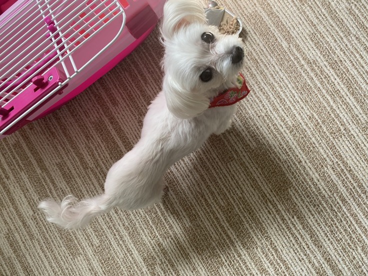 愛犬は9歳のマルチーズの女の子、名前は"しらす"と言います。