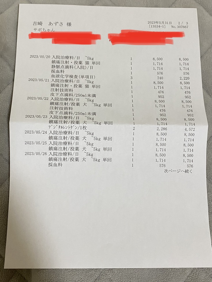 まだうちに迎えて1ヶ月なので保険もまだ入っておりません。