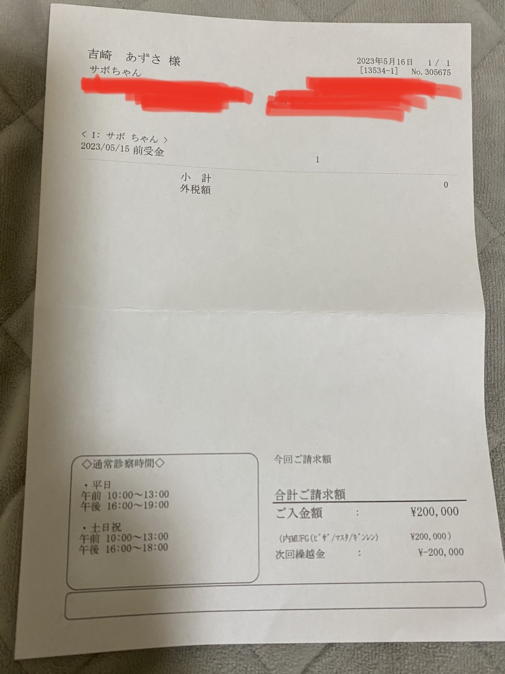 万が一、サボちゃんが亡くなってしまった場合、いただいた支援金については、返金はせずこれまでの治療費に当てさせていただきます。