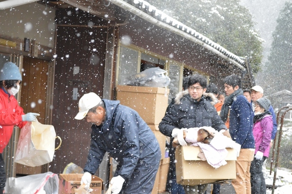 動きやすいように薄手のフリース姿で頑張って作業してました。