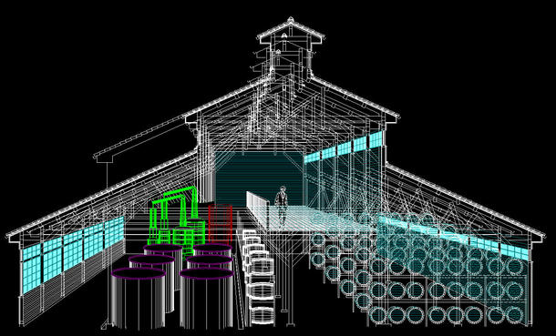 第一段階改修として雨漏りと柱が弱っている部分の修繕を行い、これ以上建物の劣化が進まないようにします。さらに建物内に樽の貯蔵庫を設けます。これにより、蒸留所内で糖化から、樽貯蔵までを一貫して行うことができます。
